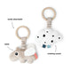 Les jouets suspendus sont parfaits pour amuser bébé n’importe où . Ils peuvent être attachés à la poussette, au landau ou même au cozy pour offrir un divertissement interactif. L´hippopotame offre un hochet amusant tandis que le nuage émet un papier bruissant sensoriel. Les deux jouets sont munis de rubans sensoriels à explorer et sont faciles à suspendre grâce à leur lien pratique. Cet ensemble comprend un hippopotame de couleur sable et un nuage blanc avec des taches noires, tous deux munis d'un élastique en sable.