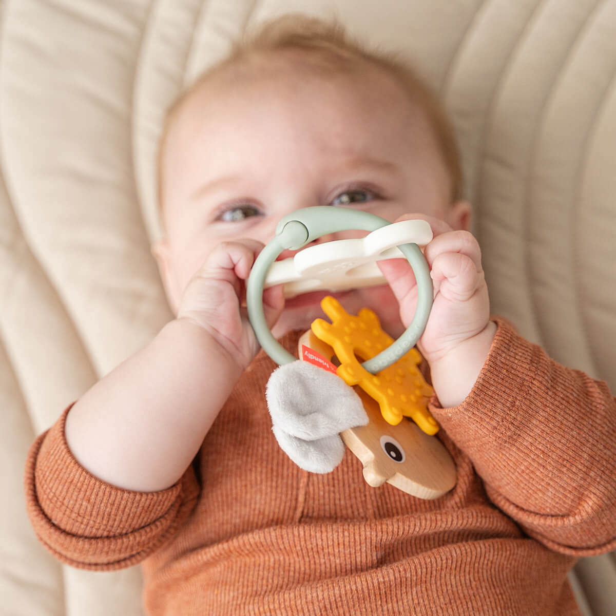 Un indispensable pour éveiller bébé en douceur, l’occuper pendant les trajets, ou l’apaiser en cas de poussée dentaire.