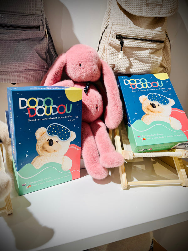 Le jeu Dodo Doudou transforme la routine du coucher en une douce aventure ludique. Pensé pour accompagner les tout-petits pas à pas vers le sommeil, il mêle gestes rassurants et rituels bienveillants pour apaiser la transition du jour à la nuit. Grâce à des cartes colorées et des consignes simples, l’enfant joue à endormir son doudou… et s’endort à son tour, en toute sérénité.