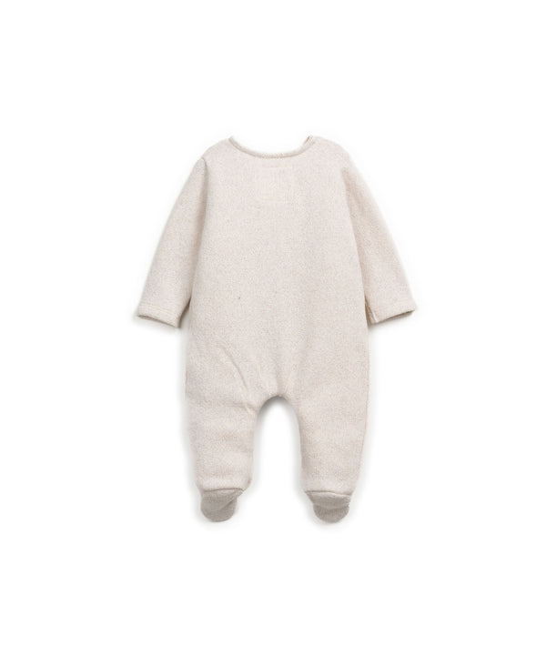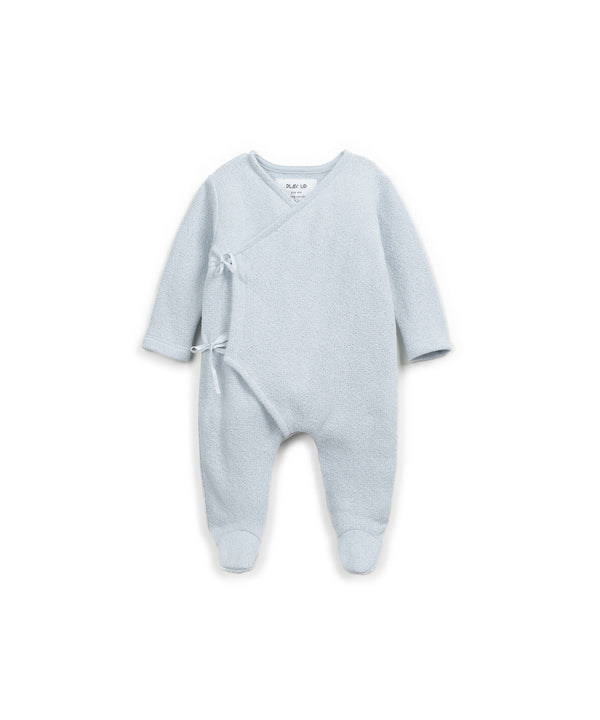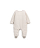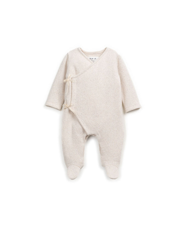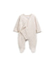 Pensée pour les tout premiers instants, cette combinaison en coton recyclé et régénéré est une véritable seconde peau. Elle adopte une forme cache-cœur délicate avec de jolis liens à nouer sur le côté, évitant tout contact avec le visage de bébé. Sa matière légèrement chinée est à la fois douce, respirante et pleine de charme naturel. Les pieds intégrés assurent une chaleur continue, idéale pour les nouveau-nés. Avec ses manches longues et sa fermeture croisée, cette combinaison offre un habillage facile et tout en tendresse.