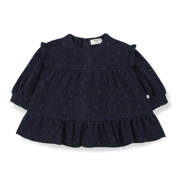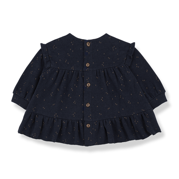 Avec ses petits motifs discrets et sa coupe légèrement froncée, la robe MONIKA enveloppe les bébés dans une tendresse élégante. Confectionnée en maille chaude et moelleuse, elle est pensée pour l’hiver, sans compromis sur le confort. Les jolis volants à la base et aux épaules, ainsi que la boutonnière intégrale au dos, apportent un charme vintage tout en facilitant l’habillage. Associez-la aux collants SALLY et au bandeau EIRE pour un ensemble raffiné et douillet. Cette création signée 1+ in the family est confectionnée avec soin en Espagne 🇪🇸.