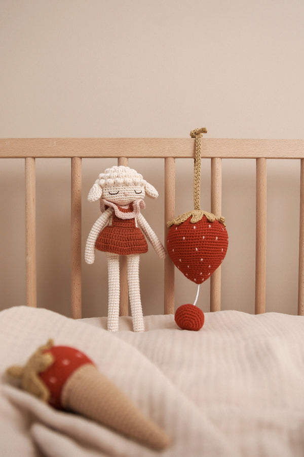 Avec sa silhouette élancée et son regard endormi, cette peluche en crochet incarne la tendresse dans sa forme la plus pure. Entièrement fabriquée à la main à partir de coton biologique certifié GOTS, elle est le fruit du savoir-faire délicat de femmes artisanes en Turquie, imaginée avec soin en Norvège. Chaque pièce est unique, façonnée selon des techniques traditionnelles qui rendent hommage au travail lent et minutieux.
