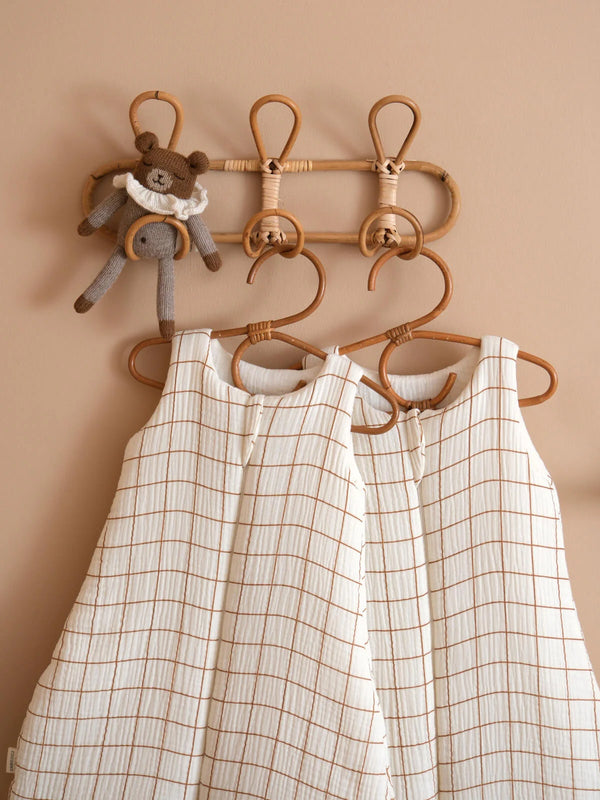 Gigoteuse en gaze carreaux camel ouverture devant