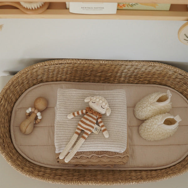 Parfaite pour les peaux sensibles, elle est hypoallergénique, naturellement antibactérienne et teintée avec des colorants éco-responsables. Son rembourrage en polyester recyclé ajoute une touche d’engagement supplémentaire, pour un jouet aussi doux pour la planète que pour les tout-petits.