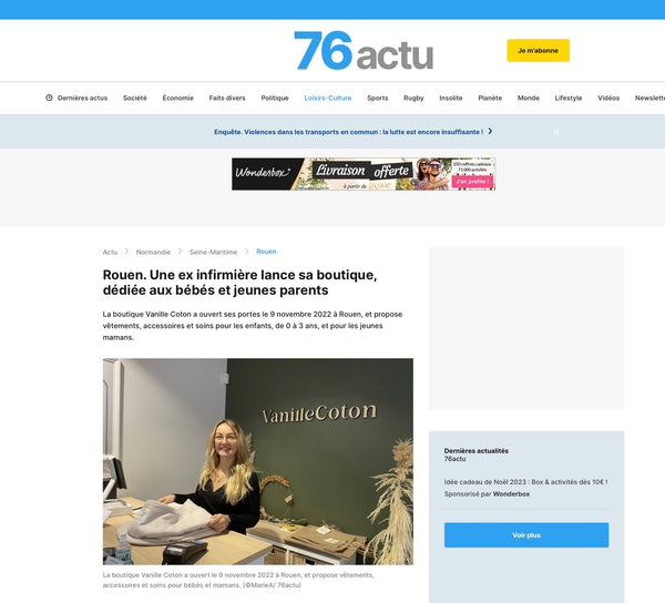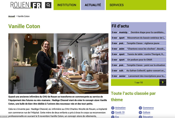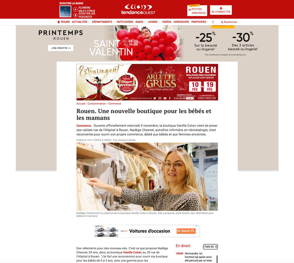 La boutique Vanille Coton a ouvert ses portes le 9 novembre 2022 à Rouen, et propose vêtements, accessoires et soins pour les enfants, de 0 à 3 ans, et pour les jeunes mamans.