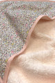 Tissu Liberty et bouclette éponge certifiés OEKO-TEX®. L'éponge épaisse possède une maille intirable qui ne se détricote pas quand on accroche par mégarde le fil de l'éponge !