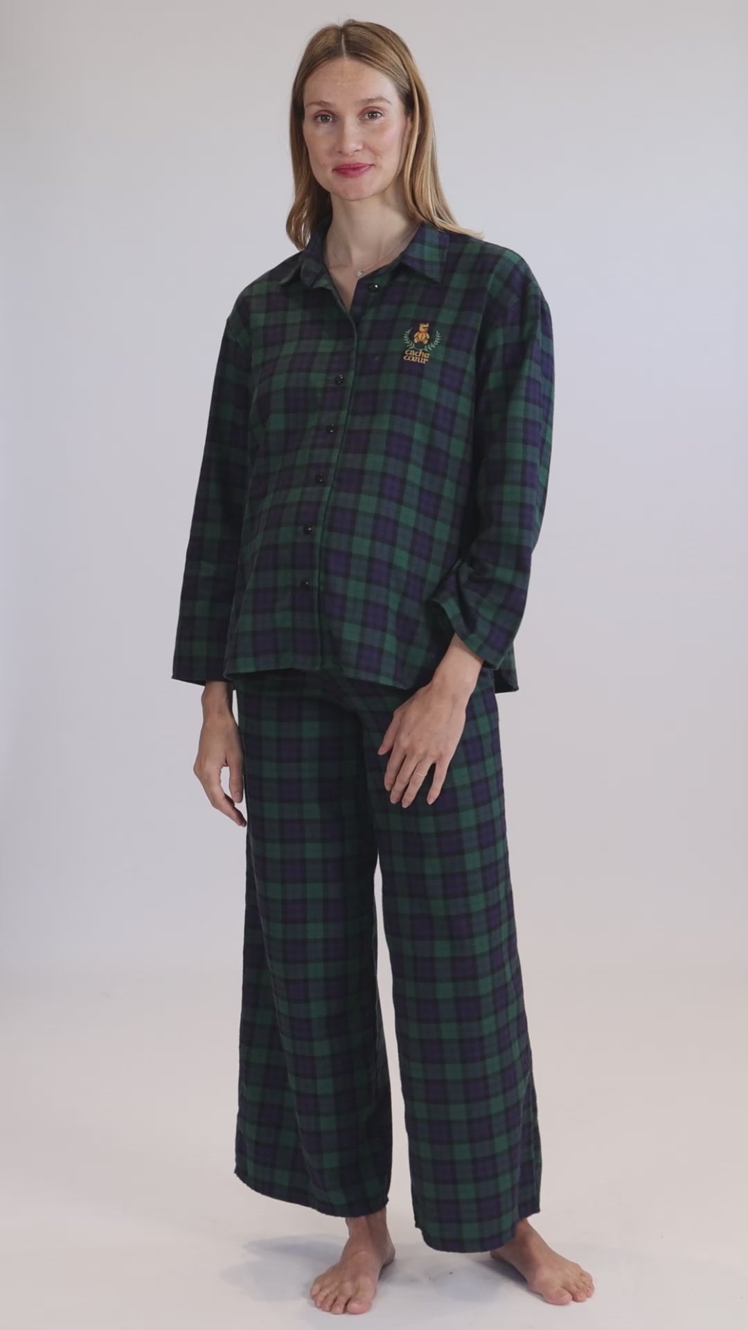 Le motif à carreaux, inspiré des classiques « chemises de nos grands‑pères », se marie à une délicate broderie ourson, pour une note poétique pleine de réconfort.